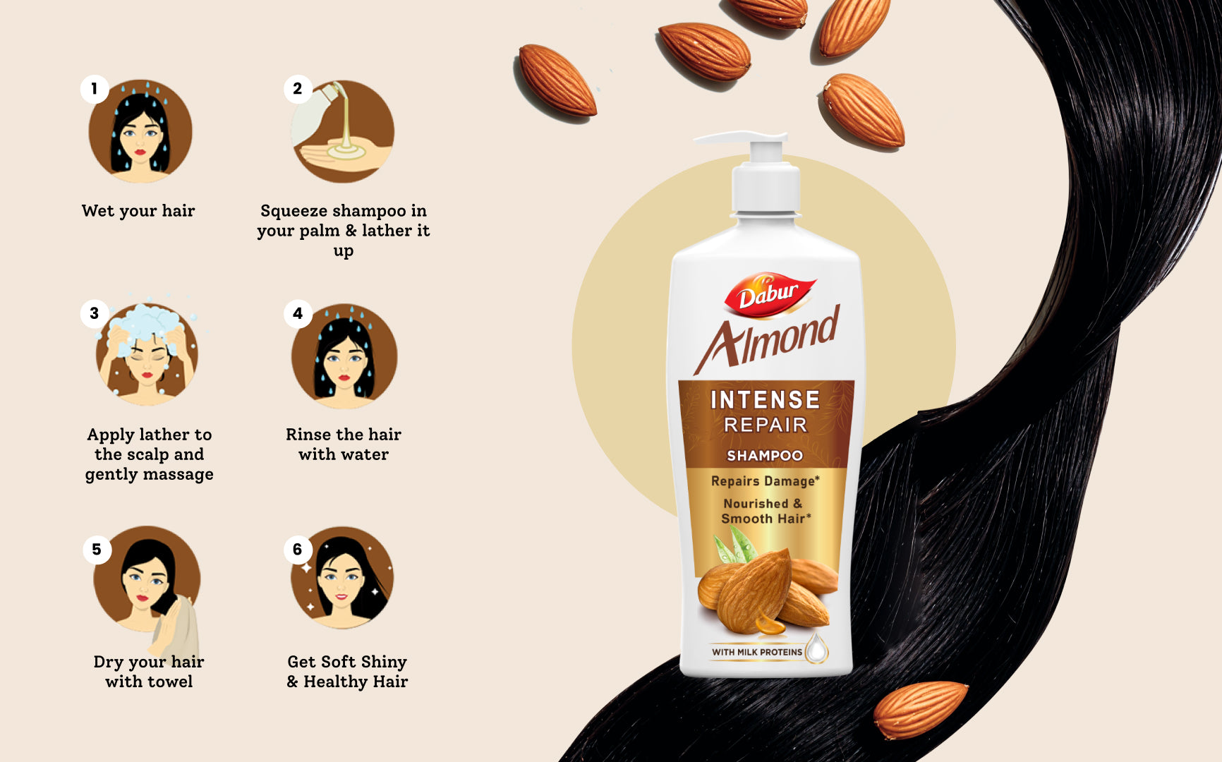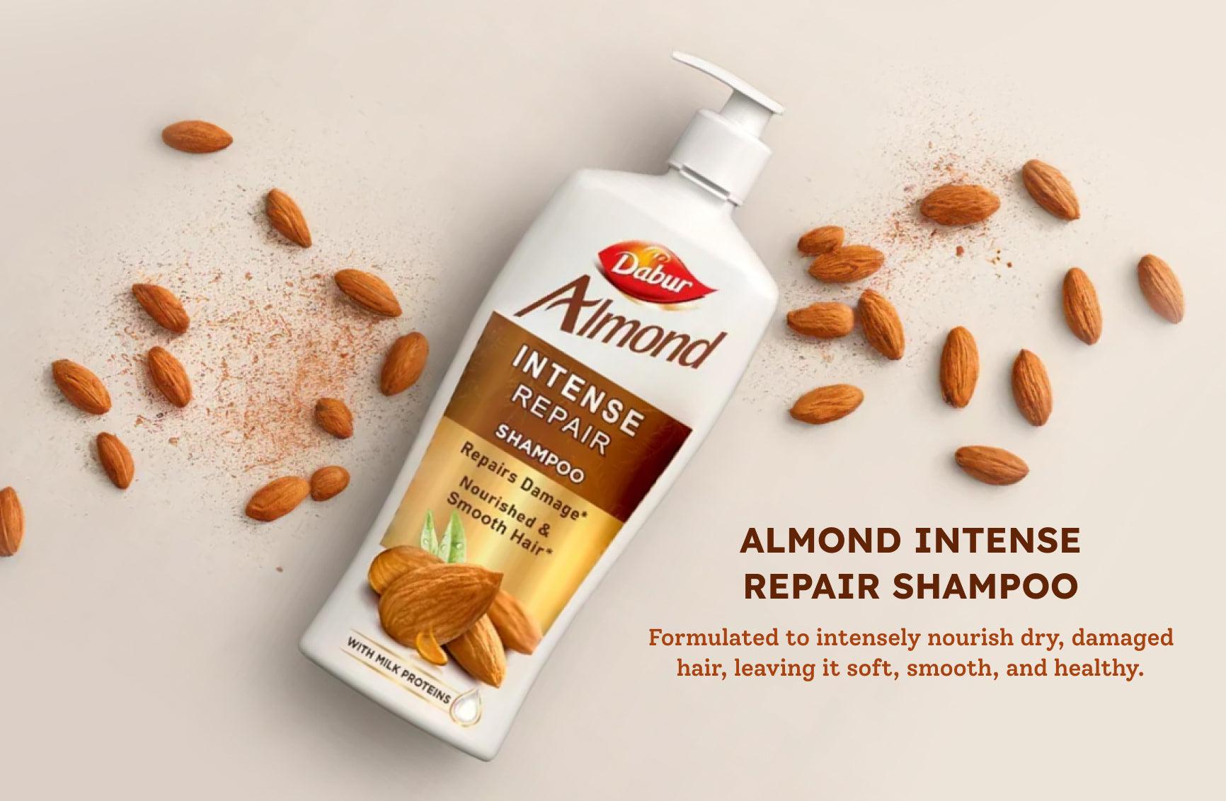 Dabur Almond Intense Repair Shampoo is a premium quality hair care product that contains the goodness of almond oil and milk, which are known for their nourishing and moisturizing properties. This shampoo gently cleanses your hair, leaving it soft, smooth, and manageable. The unique formula helps to strengthen your hair, prevent breakage, and reduce hair fall. It also helps to restore the natural shine of your hair and protect it from environmental damage. Ideal for all hair types, this shampoo is free from harmful chemicals and is suitable for regular use. Get healthy, beautiful hair with Dabur Almond Intense Repair Shampoo!
