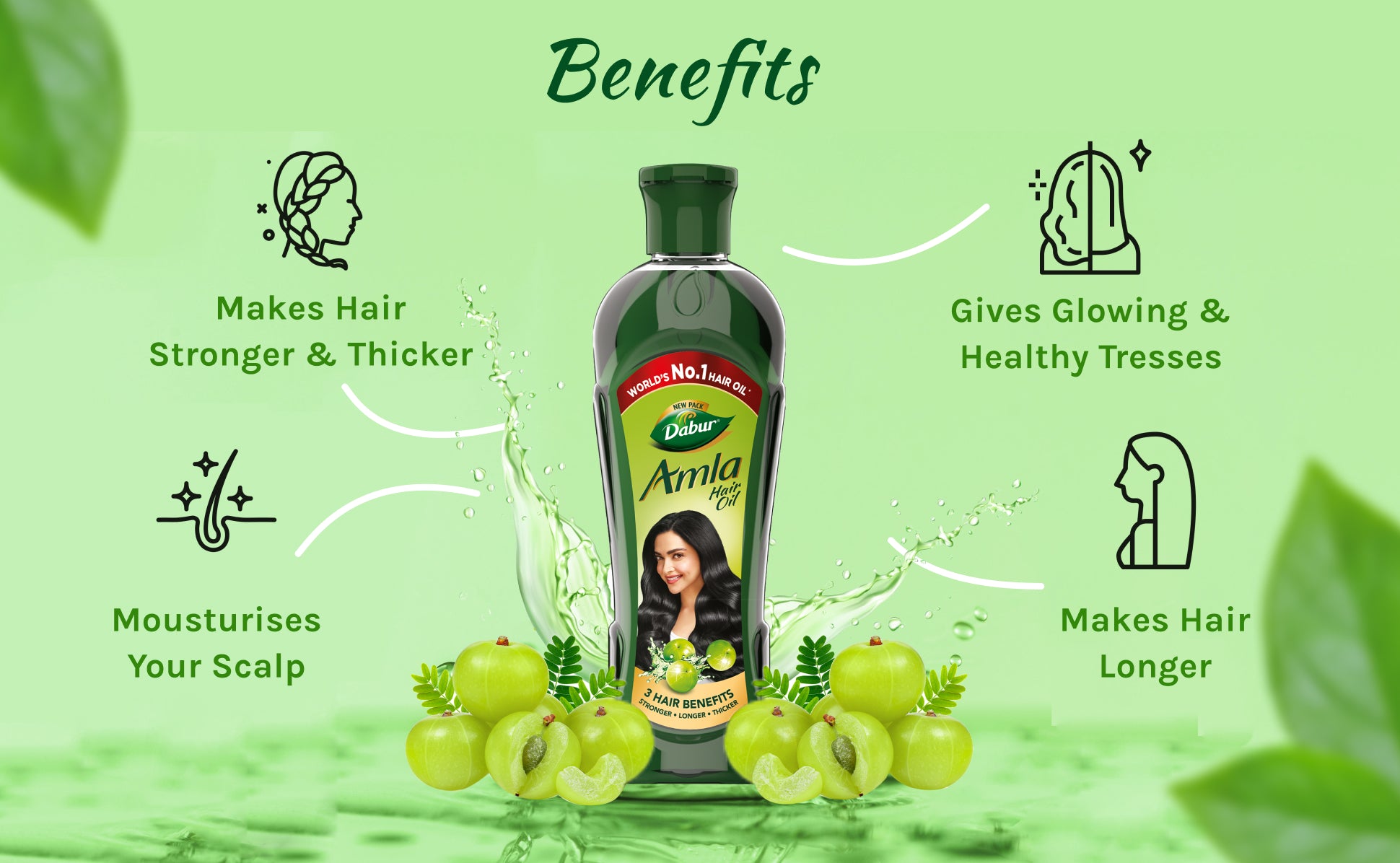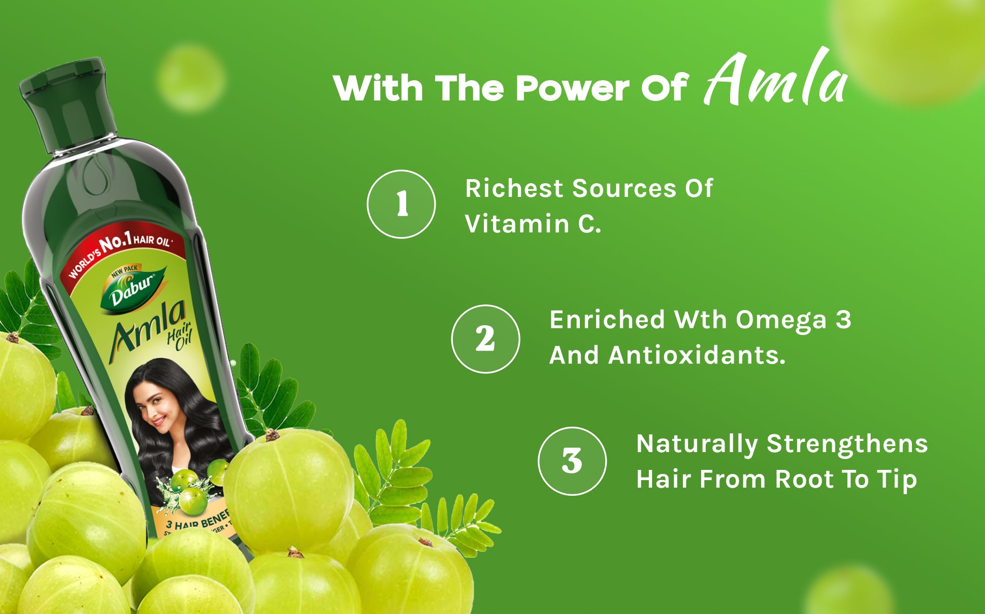 Manufactured By:-Dabur Amla Hair Oil is made from Amla extract. Amla is known to be a power fruit for your hair. As the power of Amla nourishes your scalp from within, your hair is strengthened from root to tip. This helps give you thick, long & silky hair. Amla is also enriched with Omega 3 and Antioxidants and has rich hair nutrients like vitamin C, tannins and amino acids which helps in making your hair stronger. It also helps in maintaining the natural hair colour.