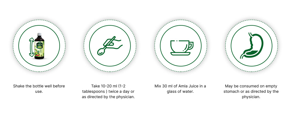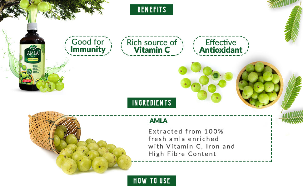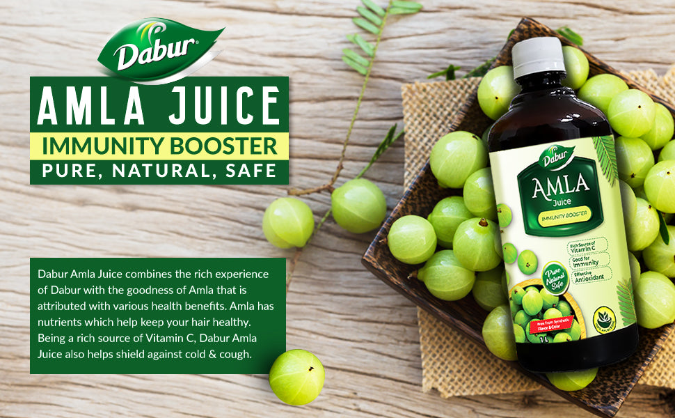 Amla is one of the most widely acclaimed medicinal herbs and revered for its beneficial effects in Ayurveda. Ayurveda considers Amla as a Rasayana, or a herb with potent antioxidant properties. It is good for liver health and aids in improving liver and digestive functions, countering inflammation and protecting against effects of free radicals. Scientific studies have exhibited that it also helps in lowering cholesterol. Amla also known as Indian Gooseberry is a rich source in Vitamin C, which helps boost immunity. Dabur Amla Juice helps protect oneself from common day to day afflictions. It contains healing properties that boost the healthy functioning of cells, tissues, organs, and system. Antibacterial and Antiviral qualities found in Dabur Amla Juice helps in regulating steady blood flow. According to Ayurveda it works to balance all three dosha’s - Kapha, Pitta and Vatta. Amla Juice has been consumed for ages as a herbal way to keeping hair & skin healthy .