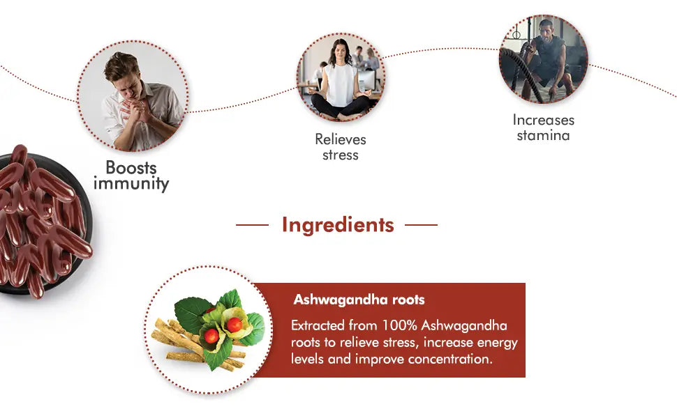 In scientific studies, Dabur Ashwagandha Capsules have shown to support the adrenals via reducing cortisol levels that helps counter the negative effects of this hormone. Its supplementation has shown to improve strength and stamina by improving heart and lung capacity while increasing energy levels. It is also known to be a great immunity booster and has antioxidant properties.