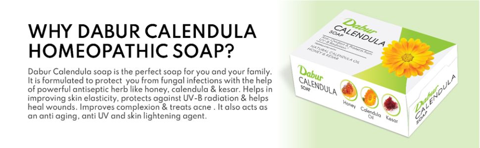 PROTECTS FROM UV-B RADIATION: Dabur Calendula Soap is an antioxidant soap containing "Calendula Oil" that protects from UV-B radiation.