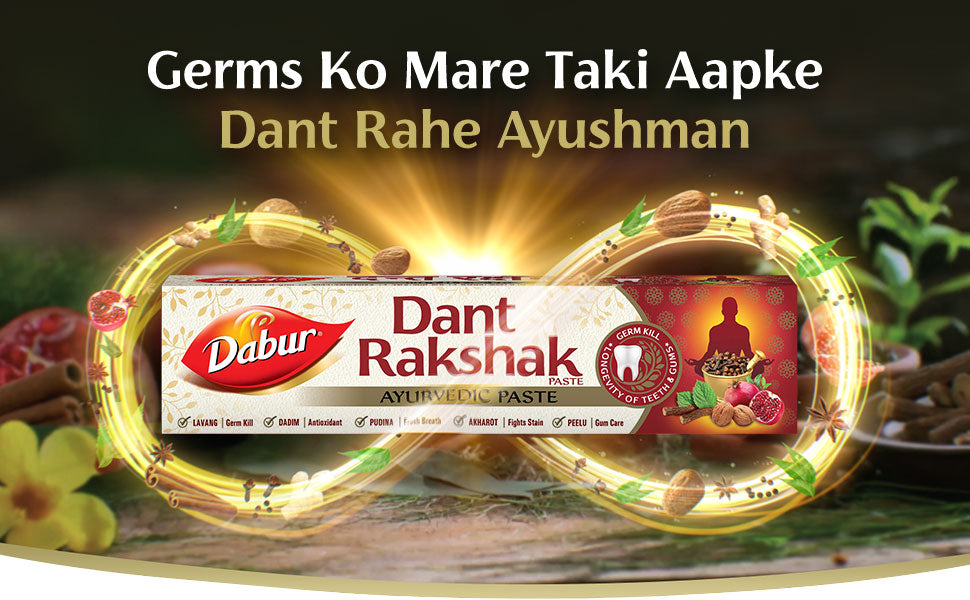 Kills Germs for Longevity of Teeth and Gums: The unique Ayurvedic herbs present in Dabur Dant Rakshak kill germs and promote the longevity of your teeth and gums.