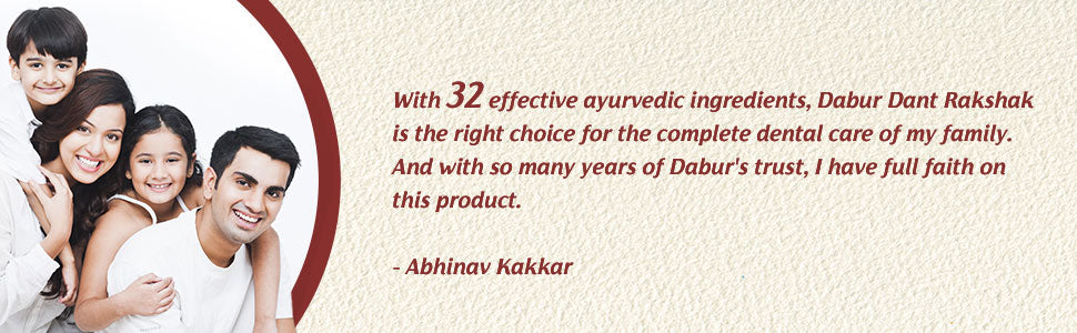 32 Ayurvedic Herbs: Dabur Dant Rakshak contains 32 potent and effective Ayurvedic herbs.