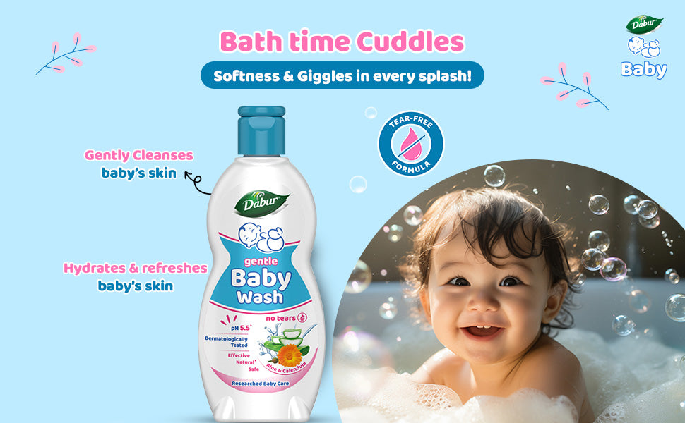 The all new Dabur Gentle Body Wash with its No Tear Formula gently cleanses baby's skin and keeps it hydrated & refreshed ensuring giggles in every splash.