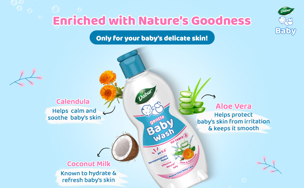 Manufactured By:-The all new Dabur Gentle Body Wash with its No Tear Formula gently cleanses baby's skin and keeps it hydrated & refreshed ensuring giggles in every splash.