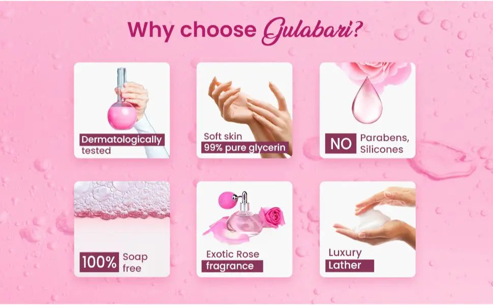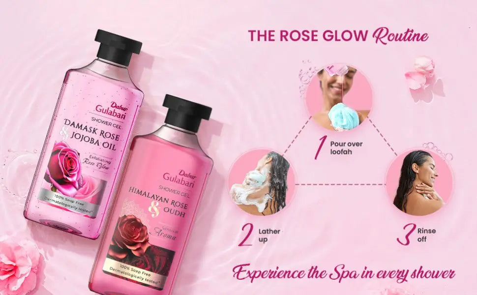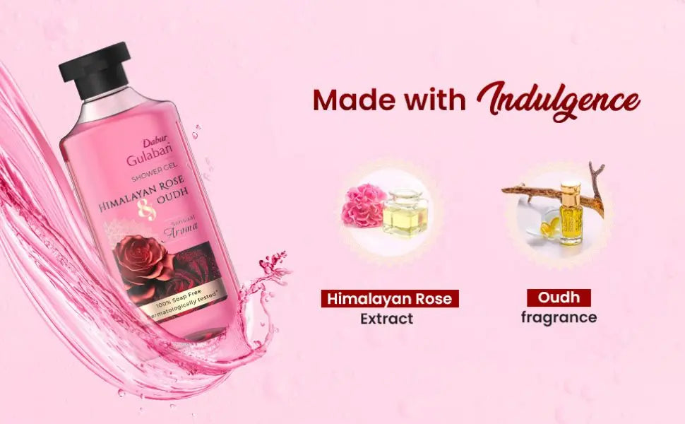 Pamper your skin with Dabur Gulabari Damask Rose & Jojoba Oil Shower Gel that gently cleanses your skin with the soft beads. Crafted with 99% pure glycerin, goodness of Damask Rose extract that doesn't just make you smell exotic, but also gives you a radiant rose glow. This fragrant skin-care shower gel is enriched with Jojoba Oil that nourishes & hydrates your skin. This formulation contains No Soap, No Parabens, No Silicones and it is dermatologically tested.