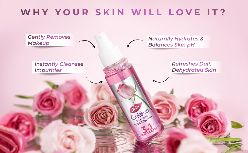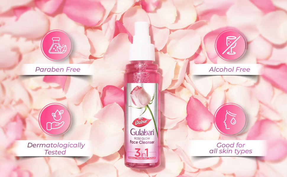 Introducing Dabur Gulabari Rose Glow Face Cleanser, your ultimate skincare solution infused with 100% pure and natural rose water. This multitasking marvel serves as a cleanser, toner, and moisturizer, catering to all skin types. Experience instant hydration and rejuvenation as it revitalizes tired skin, while balancing pH levels and tightening pores for a smoother complexion. Incorporate it into your daily routine, used twice a day, for naturally glowing and radiant skin that speaks volumes.