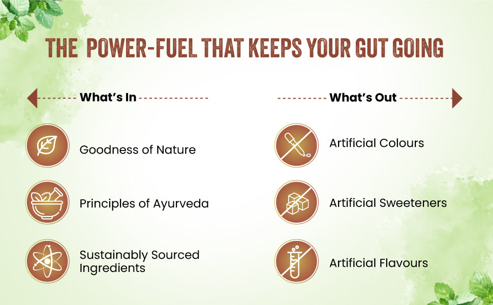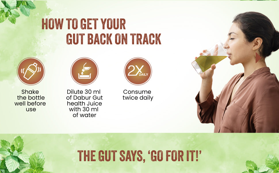 Our juice is designed to help you, feel you best. Dabur Gut health juice contains combination of 12 powerful Ayurvedic ingredients like Amla, Sunthi, Saunf, Ajwain- all are selected to boost digestive health. Amla is a potent antioxident and has been used for centuries to promote good gut health. Sunthi, Saunf & Ajwain helps in secretion of digestive enzymes & help reduce indigestion and blotting. The Juice is created by blending a carefully selection of herbs at optimal ratio using a water based concentration process. The procedure helps preserves the Phyto constituents content of the Juice. This juice is free from harmful pesticides, additives and suitable for daily consumption. If you want to change your life, try Dabur- Gut health juice. From a single bottle comes a big change for better digestive and healthy life.