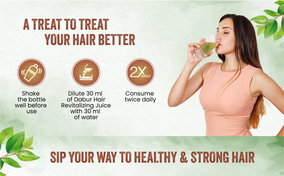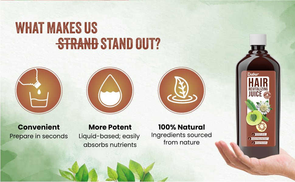 Our formulation contains a blend of 5 powerful ayurvedic ingredients with proven benefits for hair growth and nourishment, including Amla, Bhringraj, Aloe Vera, and Ashwagandha. Amla is rich in vitamin C, antioxidants, and ingredients that are essential for healthy hair roots and control of hair loss. Bhringraj promotes hair growth by stimulating the blood vessels in the scalp, while Aloe Vera soothes and moisturizes the scalp, promoting healthy hair growth. Ashwagandha is believed to improve blood circulation and reduce stress, which can contribute to hair fall control. All over the formulation helps rejuvenate hair, strengthening hair roots and boosts hair growth. Our Juice is made using only the highest quality ingredients and a unique production process to ensure optimal benifits. It is free from harmful chemicals, additives, making it completely suitable for daily use. The Juice is created by blending a carefully selection of herbs at precisely measured ratio using a water based concentration process. The procedure preserves the Phyto constituents content of the decoction. Our product helps you nourish hair from the root to tips with the healing power of proven herbs and ingredients, to give you beautiful healthy hair that shines. 1. From a bottle here comes a natural and effective way to achieve a healthy and radiant hairstyle. 2. There is more to good hair than you think. Not Just aesthetic, Healthy hair is also a sign of confidence.