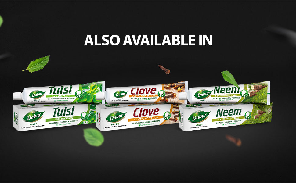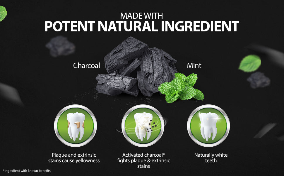 Dabur brings you a unique formulation of charcoal & mint that will help ensure your teeth remain naturally white with a pleasant mouth feel. Activated Charcoal's powerful adsorption properties on account of its negatively charged, porous texture make it a useful choice to help fight extrinsic stains and the layer of plaque that forms on the teeth.