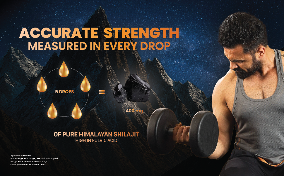 It is Natural Himalayan Shilajit extract in drops format giving you Hassle Free & Accurate measurement only at Rs 4 per dose to improve Strength & Stamina.