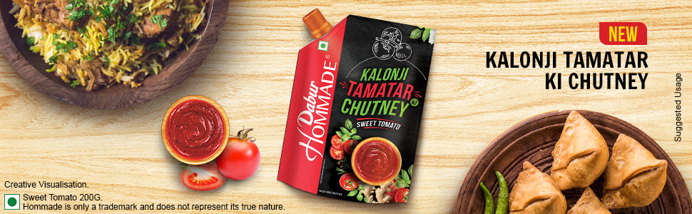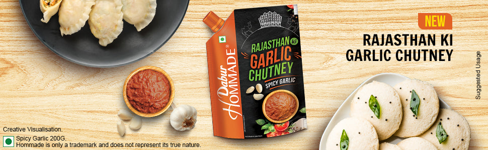 Dabur Hommade Dilli ki Hari Chatpati Chutney is crafted with the right touch of spices and multiple choicest ingredients to complement your regular meals or snacks with tangy, zingy, and spicy flavor notes. It is the perfect accompaniment to your chaat, samosas, biryanis, paranthas, and more snack items. So, enjoy the finger-licking delicious range of Dabur Hommade Chutneys, made just for you. So, what are you waiting for? Go ahead and buy this product online today!