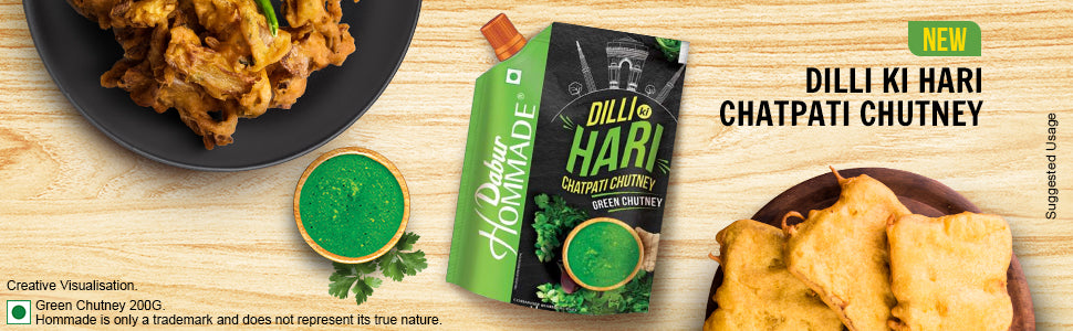 Manufactured By:-Dabur Hommade Dilli ki Hari Chatpati Chutney is crafted with the right touch of spices and multiple choicest ingredients to complement your regular meals or snacks with tangy, zingy, and spicy flavor notes. It is the perfect accompaniment to your chaat, samosas, biryanis, paranthas, and more snack items. So, enjoy the finger-licking delicious range of Dabur Hommade Chutneys, made just for you. So, what are you waiting for? Go ahead and buy this product online today!