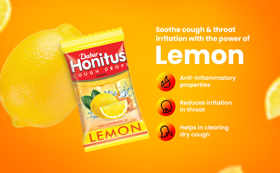Manufactured By:-Dabur Honitus Cough Drops are packed with the power of honey and essential Ayurvedic herbs. Available in honey ginger, honey tulsi, honey lemon, and honey orange flavors.