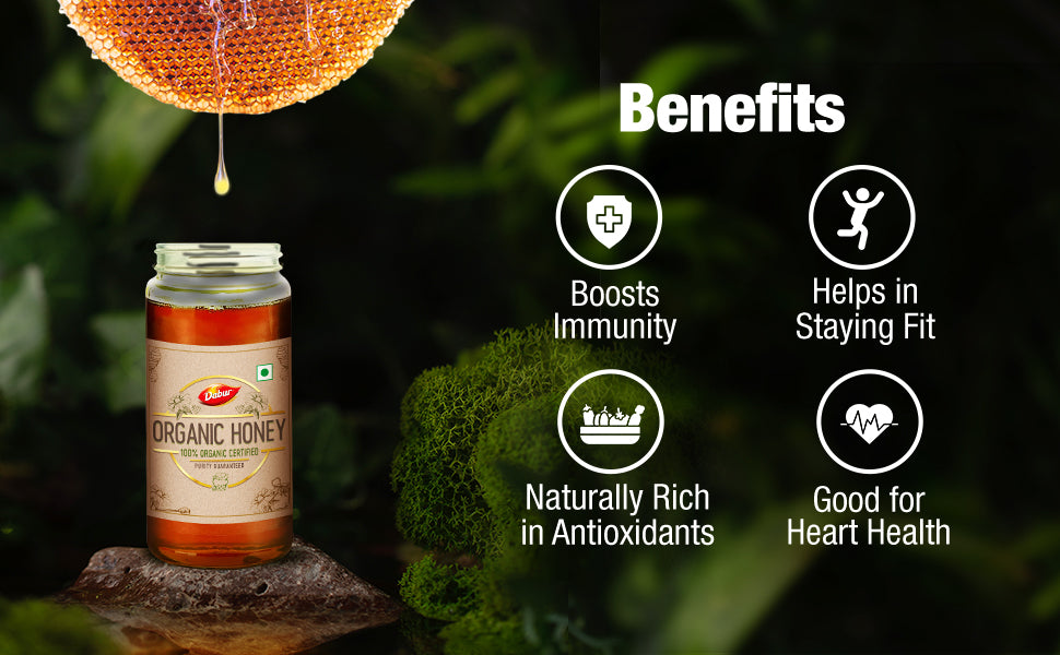Organic is not just a one-time choice, it’s a way of life. Are you also always in search of organic goodness for your family? Are you looking for 100% Pure and Natural honey straight from the hive? Then here we present to you, Dabur Organic Honey which is NPOP organic certified honey from the house of Dabur Honey – World’s No 1 Honey brand. This thick delicious honey is sourced from the hives of Apis Dorsata honeybees nestled in deep forests. No chemicals or pesticides are used within a 5 km vicinity of these hives, thereby ensuring that honeybees collect nectar only from organically grown wildflowers. It is raw, unprocessed and unpasteurized honey which is naturally rich in antioxidants to help boost immunity. It is a good source of nutrition and is considered useful in cough and cold. It offers multiple health benefits like improved stamina, better digestion, good for heart health & in maintaining a healthy lifestyle. Dabur Organic Honey is 100% compliant with all testing parameters mandated by FSSAI for purity guarantee. Kickstart your day with Dabur Organic Honey and make a healthy choice.
