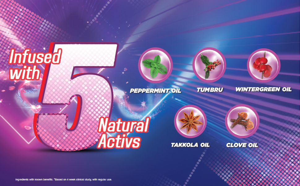 Are you Bae Ready? Dabur Red Bae Fresh Gel contains 5 Freshness Natural Activs & is clinically proven to give you up to 12 hours of freshness so that you can always be BAE READY. Its 5 Freshness Natural Activs are, 1. Wintergreen Oil : fights Bad Breath 2. Peppermint Oil : Freshens Breath 3. Clove Oil : Fights Cavity Germs 4. Takkola Oil : Fights Malodour Germs 5. Tumubru : Relieves Toothache