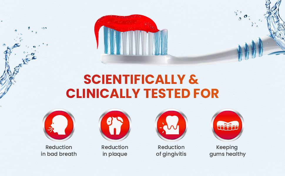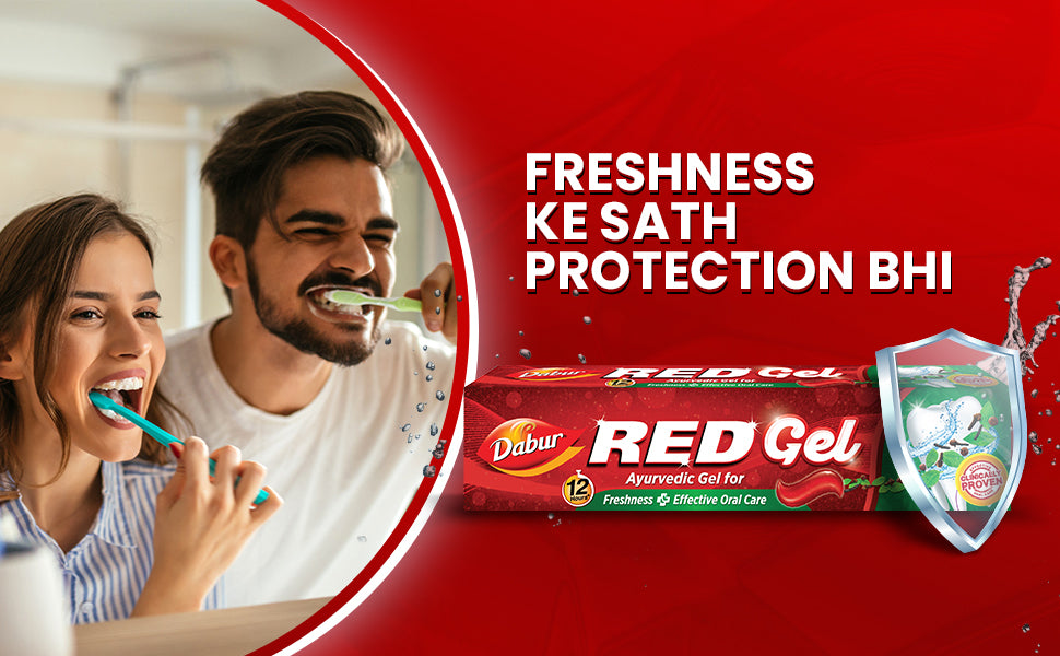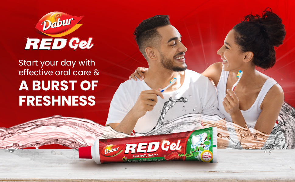 Give yourself the promise of scintillating freshness and effective oral care with Dabur Red Gel. Made with 11 potent herbs appraised in Ayurveda, the effectiveness of Dabur Red Gel Natural Toothpaste has been scientifically tested and proven. The herbal formulation works against oral problems like bad breath, plaque, gingivitis, toothache, yellow teeth, cavity, gum bleeding and ensures healthy teeth and gums without any side-effects. It has Lavang Oil that fights toothache and works as an anticaries agent - in Ayurveda it has been used for treatment of Gingivitis, Cavities and Bad breath. Pudina Satva maintains fresh breath for hours and is known to be a mouth cleanser. Tomar Beej the essential oil extracted is known to cure toothache and cavities, Sunthi is known to have anti-inflammatory and antibacterial properties.