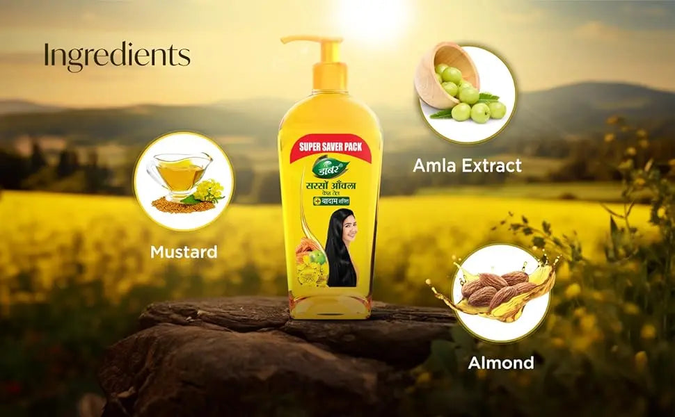 Adds Shine and Luster: offers a natural shine and luster to the hair, making it look healthy and vibrant. The conditioning properties of Amla and Sarson helps in improving the texture and appearance of the hair.