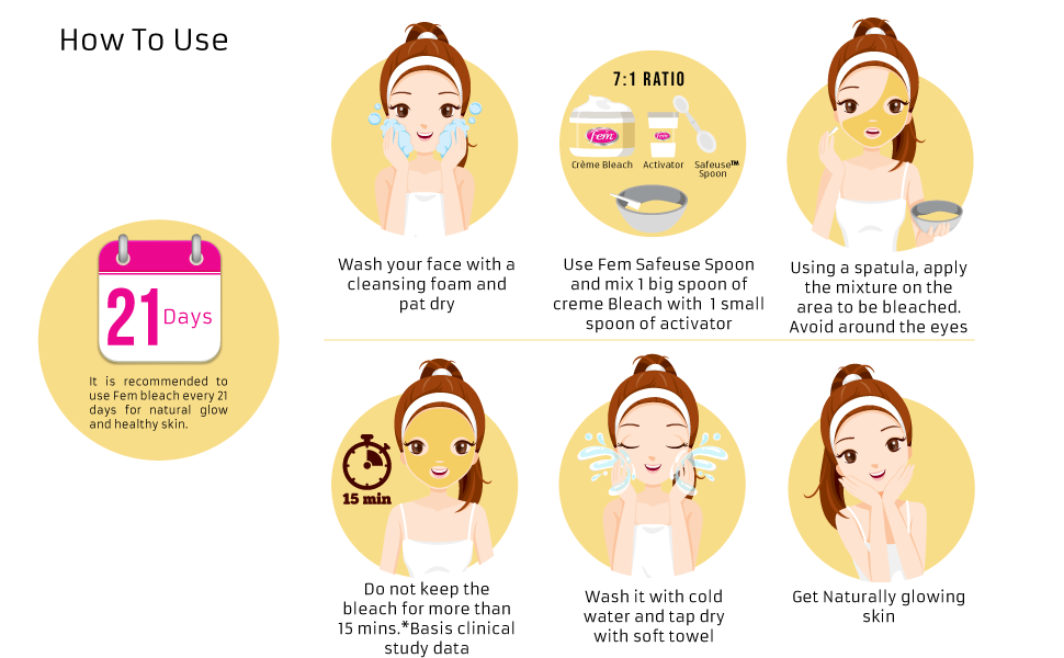 Your skin is in a constant battle with damaging elements like dust, UV rays and pollution. This takes a toll on your skin, making it look dull, tanned and lifeless. Fem Bleach gives you an edge in this everyday battle by lessening the burden on your skin and undoing the damage caused. It also ensure that you get a perfect result each time, gently and in minutes, providing you with the loving care that your skin deserves. With no added ammonia, it is a safe and effective formula that lightens & brightens the skin tone by removing any dead cells from the surface of the skin and stopping regeneration of any new pigmentation cells. Say hello to a healthy, radiant and gold like glowing skin with Fem Bleach.