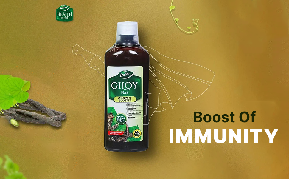 Dabur Giloy Juice is pure, safe and a natural ayurvedic health juice. It is a natural immunity booster and has many health benefits. It has antioxidant properties and is a natural detoxifier. It is free from synthetic colours and flavours and is good for liver and skin health.