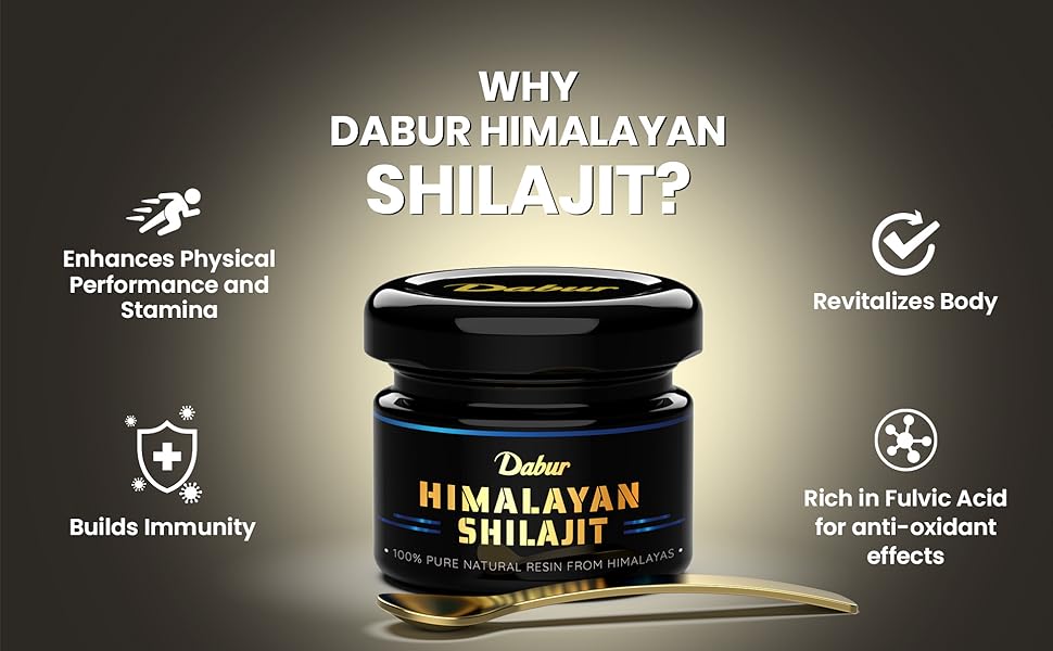 Natural Revitalizer - With >80% Fulvic Acid, Dabur Himalayan Shilajit improves overall health and supports healthy ageing with its superior anti-oxidant benefits that inhibits the formation of free radicals and subsequently reduce oxidative stress. Organically Sourced - Dabur Himalayan Shilajit is organically sourced from high altitudes of Himalayas (~20,000 ft), making it a rich source of 80+ Trace minerals and 10 vital minerals. Highest Safety Standards - It is lab tested for toxins, heavy metals and highest safety standards to ensure purest form of Shilajit extract in the product.