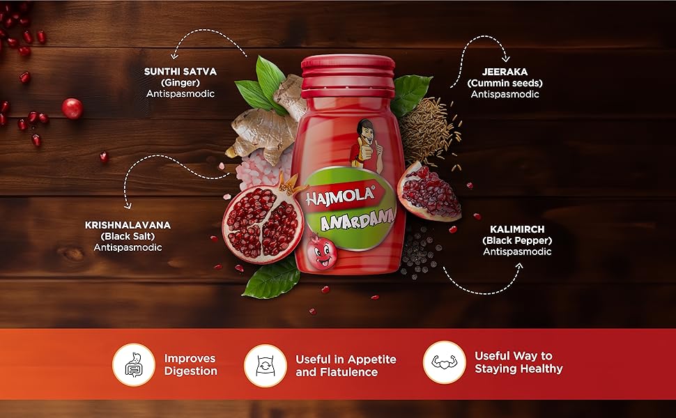 Manufactured By:-Dabur Hajmola lets you enjoy the chatpata taste as it stimulates your digestive power, especially when taken regularly after meals. Dabur Hajmola is a mix of traditional Indian culinary herbs, spices and edible salts. Not only does it get your digestive juices working better, it is also a useful laxative for children. Hajmola's khatta-meetha taste is available in regular, imli and anardana flavours.