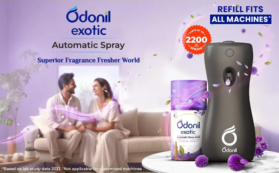 2x LONG LASTING: As compared to ordinary automatic spray machines, Odonil Exotic Automatic Spray diffuses 2x long lasting fragrances which lasts upto 2200 SPRAYS and 60 DAYS.