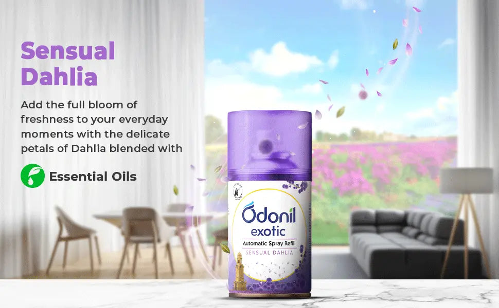 Indulge your senses with Odonil Exotic Automatic Spray. It gives you 2x long lasting fragrance and lasts upto 2200 sprays with additional germ protection features. Create a captivating experience with Automatic Spray machine which will take you on a captivating and refreshing experience with fragrance that lasts upto 60 days!