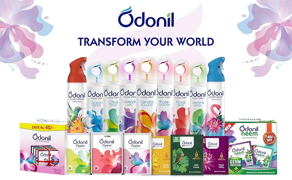 Long Lasting Fragrance: Odonil Room Spray is formulated with a special fragrance that provides long-lasting freshness and a pleasant scent to your home or office space. Instant Freshness: This room spray works instantly to neutralize unpleasant odors and freshen up your living spaces. Easy To Use: Comes in a convenient and easy-to-use spray can that allows you to control the amount of fragrance you want to release into the room. Wide Coverage: This room spray can cover a large area and eliminate odors effectively, making it perfect for use in large living rooms, bedrooms, or even office spaces. Available In 7 Fragrances: Citrus Fresh, Lavender Mist, Jasmine Fresh, Rose Garden, Ocean Breeze, Sandal Bouquet & Floral Bliss.