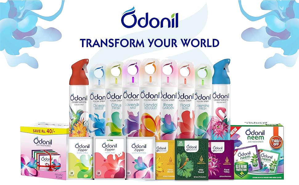 Long Lasting Fragrance: Odonil Room Spray is formulated with a special fragrance that provides long-lasting freshness and a pleasant scent to your home or office space. Instant Freshness: This room spray works instantly to neutralize unpleasant odors and freshen up your living spaces. Easy To Use: Comes in a convenient and easy-to-use spray can that allows you to control the amount of fragrance you want to release into the room. Wide Coverage: This room spray can cover a large area and eliminate odors effectively, making it perfect for use in large living rooms, bedrooms, or even office spaces. Available In 7 Fragrances: Citrus Fresh, Lavender Mist, Jasmine Fresh, Rose Garden, Ocean Breeze, Sandal Bouquet & Floral Bliss.