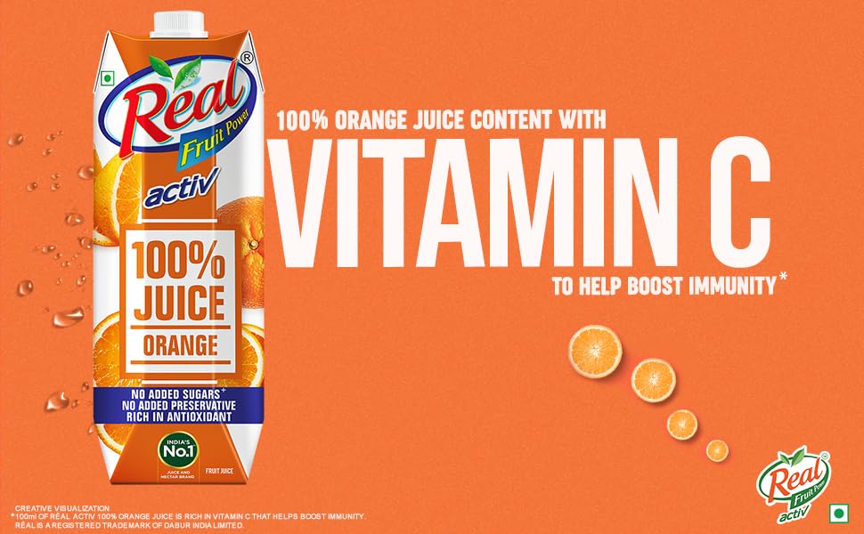 Manufactured By:-Real Activ is a range of unsweetened juices that has No Added Sugars^ or Preservatives. For us, your health and well-being is foremost, that is why we want to give your our 100%, our absolute best and nothing less. Real Activ 100% gives you the goodness of juice - that too with 0% Added Sugars^ and 0% Added Preservatives. So savour the taste of fruit juice with the goodness of phytonutrients for a nourished, balanced lifestyle. ^CONTAINS NATURALLY OCCURRING SUGARS