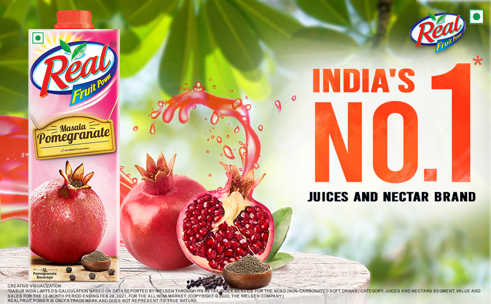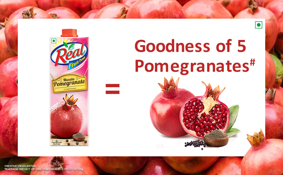 Manufactured By:-Pomegranate and spicy masala, a love story that's been a part of every Indian home across generations. We, at Real, know exactly how you like your pomegranate because we like it that way too. So, relish every drop of our new Masala Pomegranate beverage that promises to refresh you with every gulp. Savour the natural fruit goodness brought to you by Real.