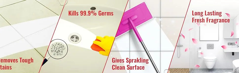 Sani Fresh Bathroom Cleaner has an advanced thicker formulation which makes the bathroom extraordinarily clean & absolutely sparkling and helps save time and effort in cleaning. It has an active germ kill formula with 10x cleaning power that removes the toughest stains on floor and gives faster, better & efficient cleaning, leaving behind a lingering and long-lasting fragrance. It helps kill up to 99.9% germs ensuring a germ-free bathroom.